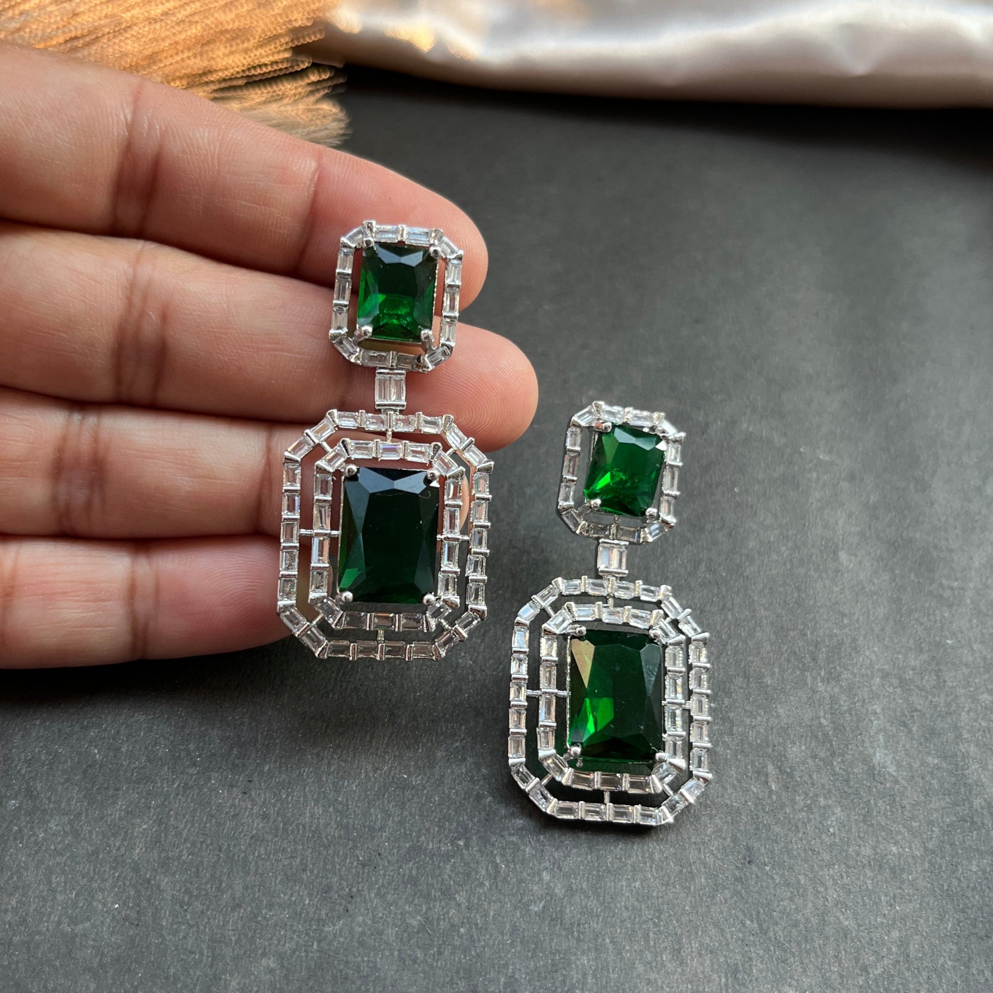 Sparkling cubic zirconia stones in a rich emerald hue, they bring vibrant color and sophistication to any outfit