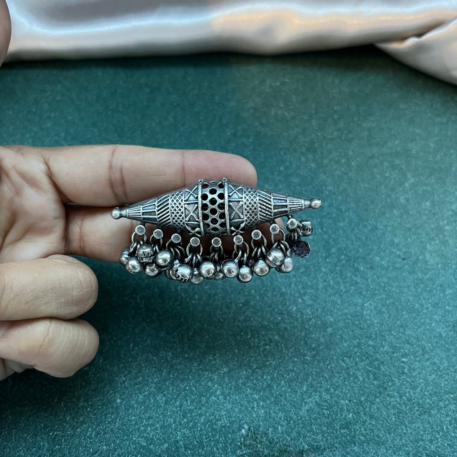 Elegant Ghungroo finger ring with delicate bells, adding a playful, rhythmic touch to your look