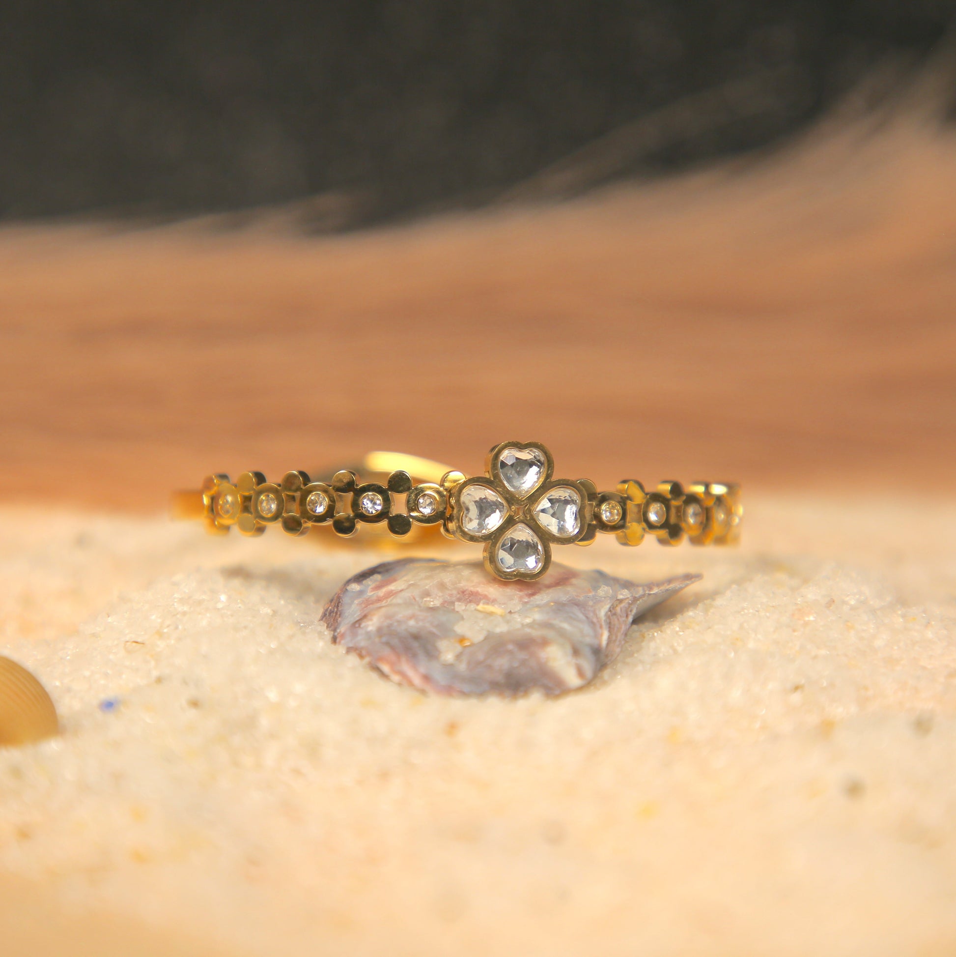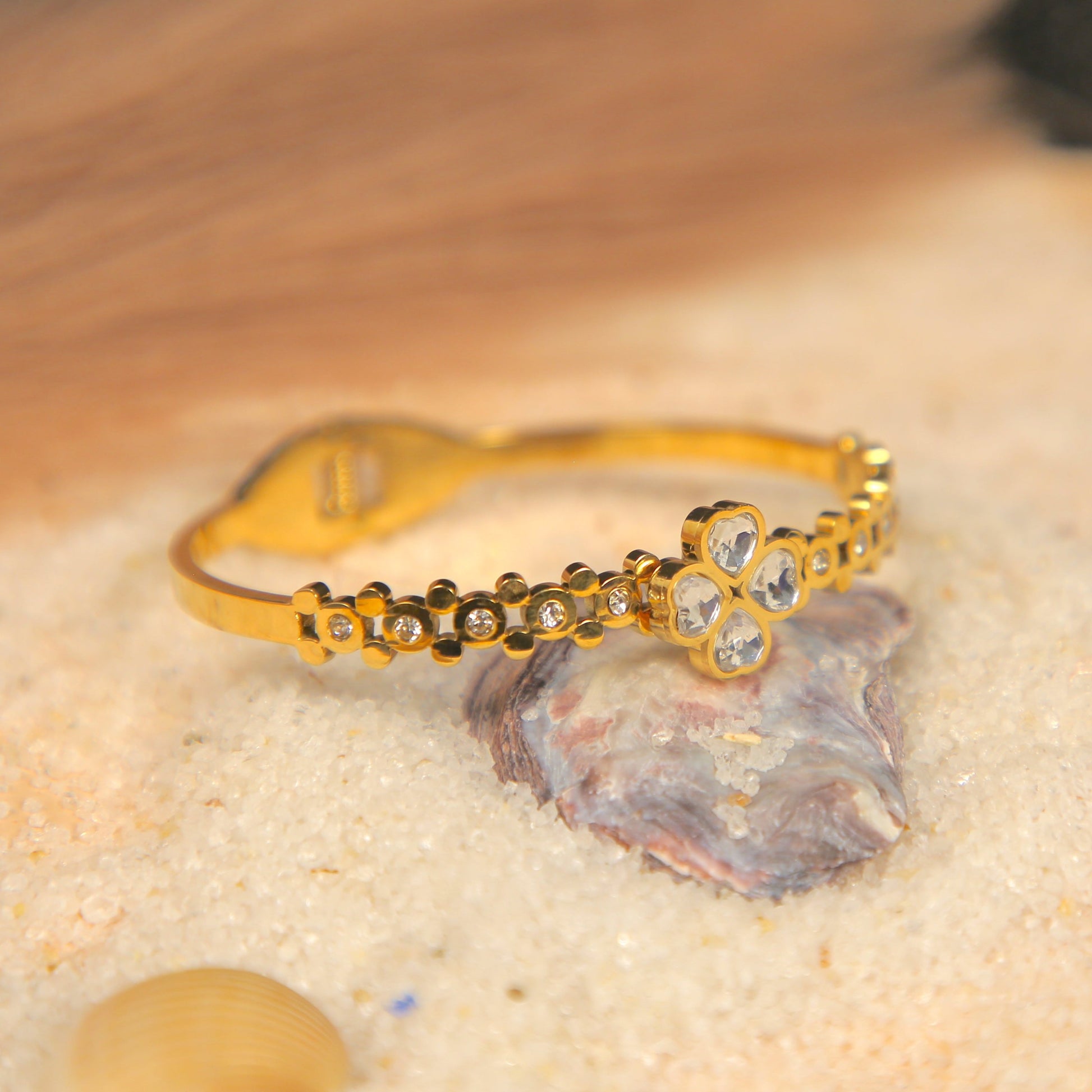 Elevate your style with our Lucky Clover Floral Bangle Bracelet! Adorned with beautiful floral stones, this studded cuff is the perfect accessory to bring luck and charm to any outfit. Stand out and make a statement with our stunning bracelet.