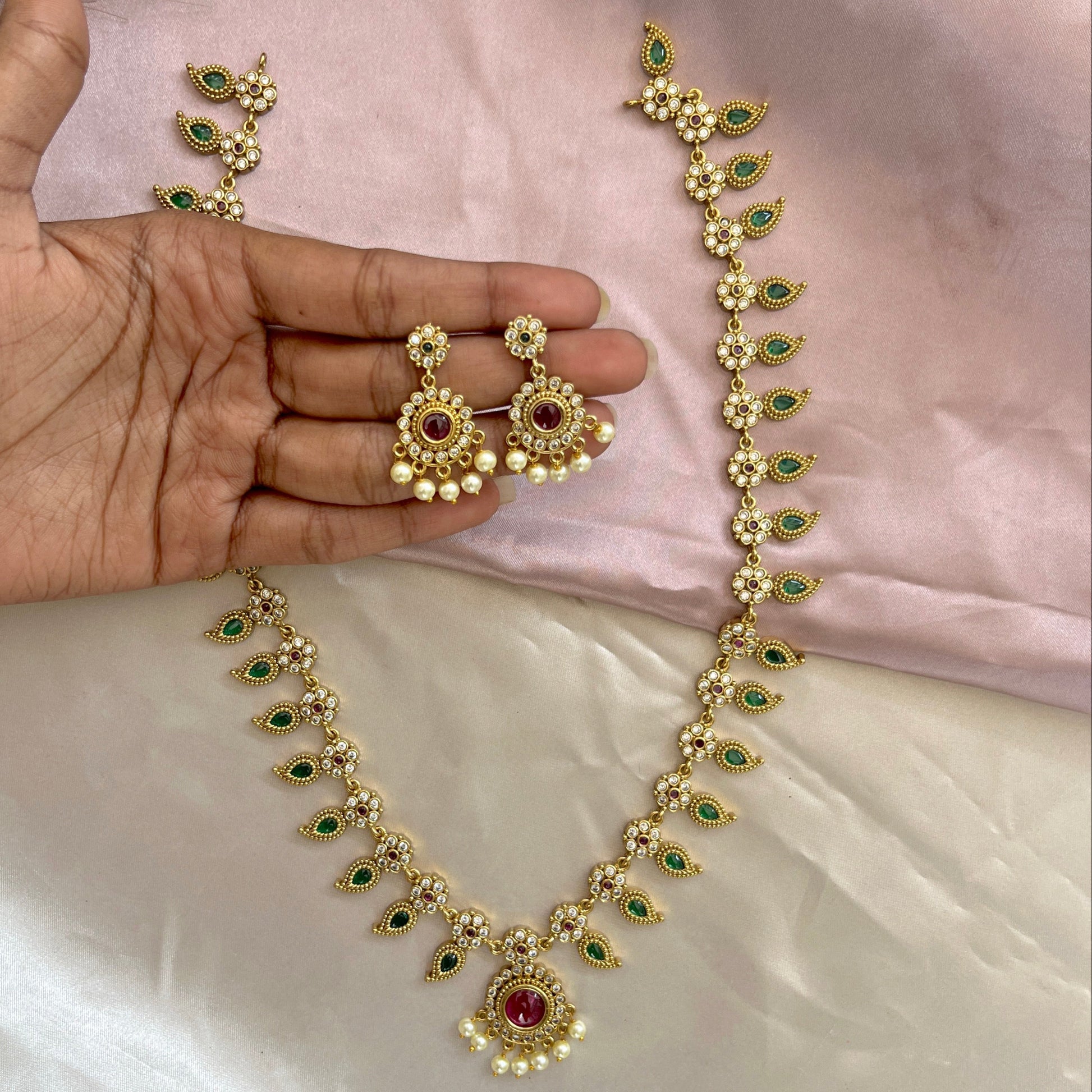 dorned with delicate mango motifs, this haram will add a touch of elegance and sophistication to your look. Perfect for any occasion, it is a must-have addition to your jewelry collection. Don't miss out on this stunning piece!